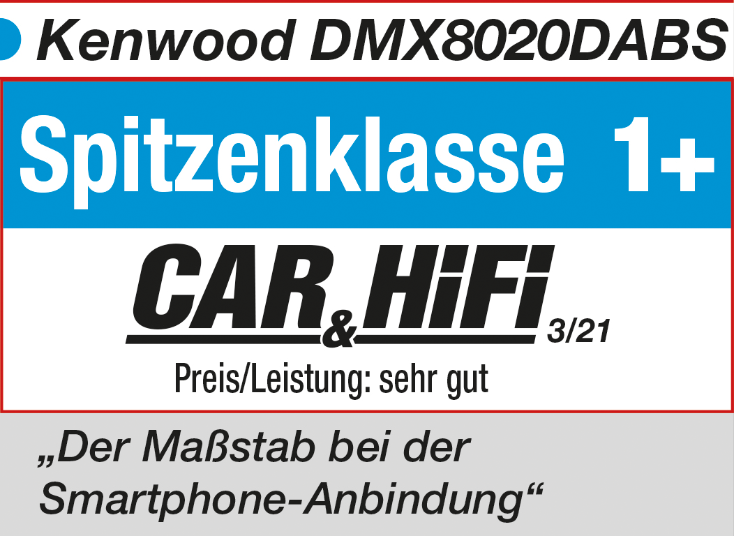 "Das Kenwood DMX8020DABS setzt mit wireless Car Play, Android Auto und wireless Mirroring Maßstäbe bei der Smartphone-Anbindung. Und auch die Kamera-Funktionen, die Audioausstattung und der erstklassige Digitalradio- Empfänger mit Seamless Blending suchen ihresgleichen.“