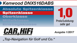 Mit dem DNX516DABS bringt Kenwood einen erstklassigen Navitainer für Golf und co. Er überzeugt durch Vollausstattung, schnelle Systemreaktionen und gelungene Bedienung."