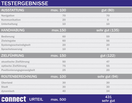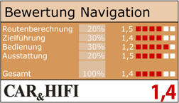 Auf der Testfahrt wurde klar: Man kann sich darauf verlassen, von Kenwood stets auf dem schnellsten Weg zum Ziel geleitet zu werden. Auch die Ausführlichkeit der Sprachansagen kann nur hervorragend genannt werden. Dank Text-to-Speech sagt die Navi sogar Straßen und POIs an. Das Timing stimmt ebenfalls. (....)