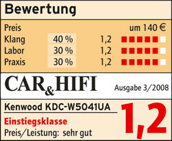 Üppige Ausstattung, lupenreine Messwerte, famoser Klang bei gelungener Bedienung und sehr fairem Preis bescheren dem Kenwood KDC-W5041UA den verdienten Testsieg.“