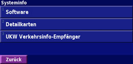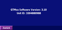 Tippen Sie auf Zurück und wählen Sie anschließend UKW Verkehrsfunkempfänger aus, um sich die aktuelle Software Version des GTM-TMC-Empfängers anzeigen zu lassen. Überprüfen Sie bitte zudem, ob die Betriebs-LED der TMC-Box leuchtet.
